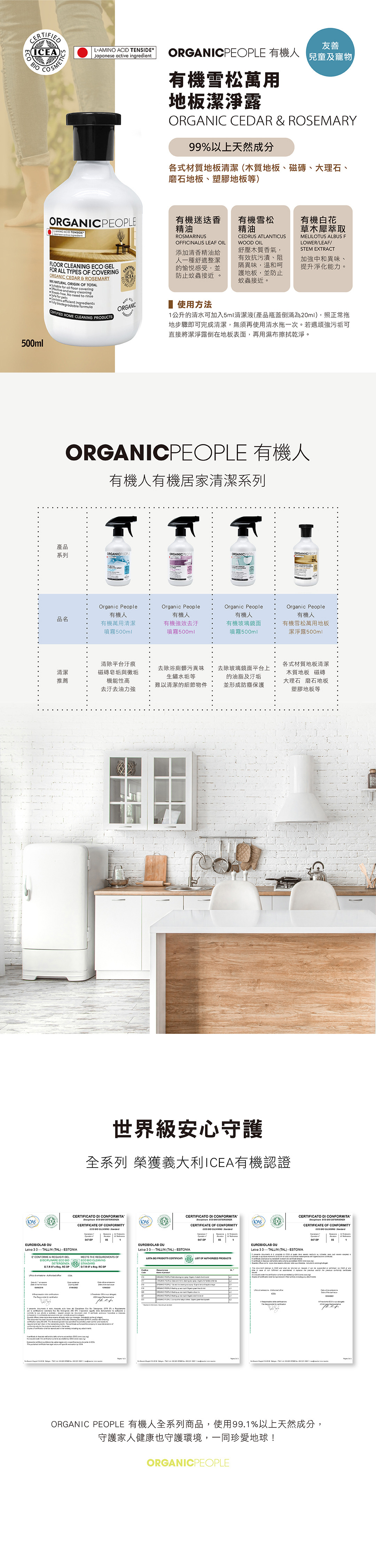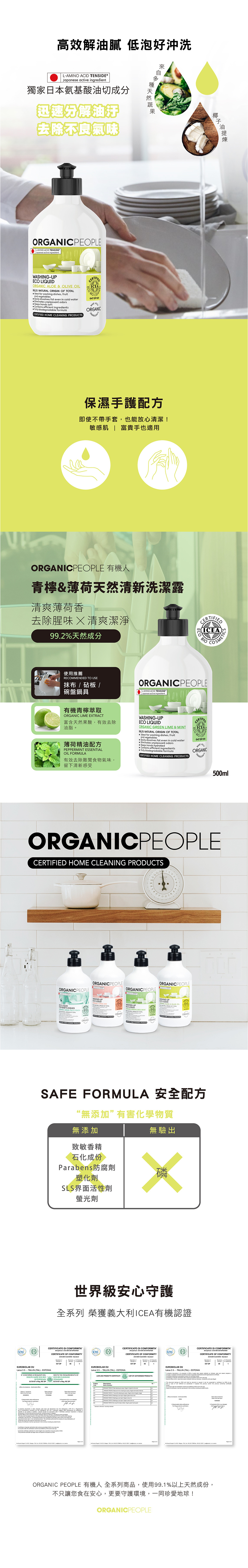 義大利ICEA有機產品標章認證,無添加Parabens&甲醛防腐劑、塑化劑及SLS界面活性劑等,具生物分解性,友愛地球,全家使用也好安心。