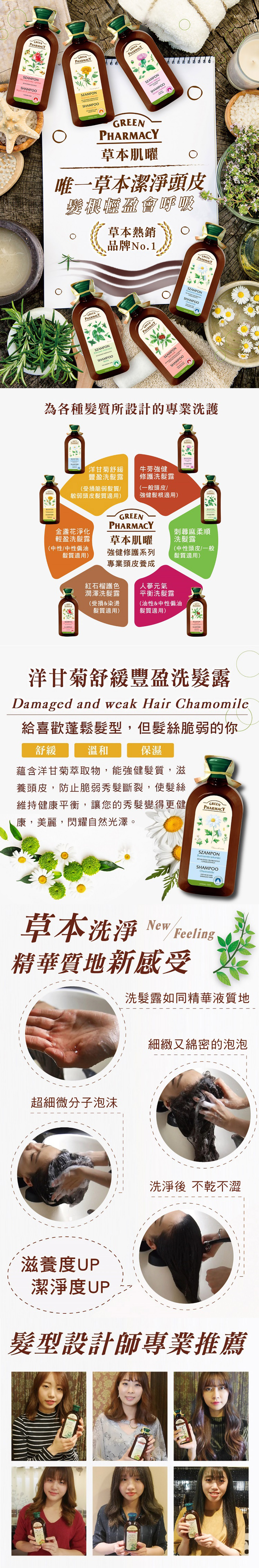 蘊含洋甘菊萃取物,呵護敏感挑剔的頭皮,去除多餘油脂,幫助毛髮保有水分並滋養頭皮、強健髮質,防止脆弱秀髮斷裂,使髮絲閃耀自然光澤,舒壓森林系香氛,讓洗髮過程更放鬆愉悅。