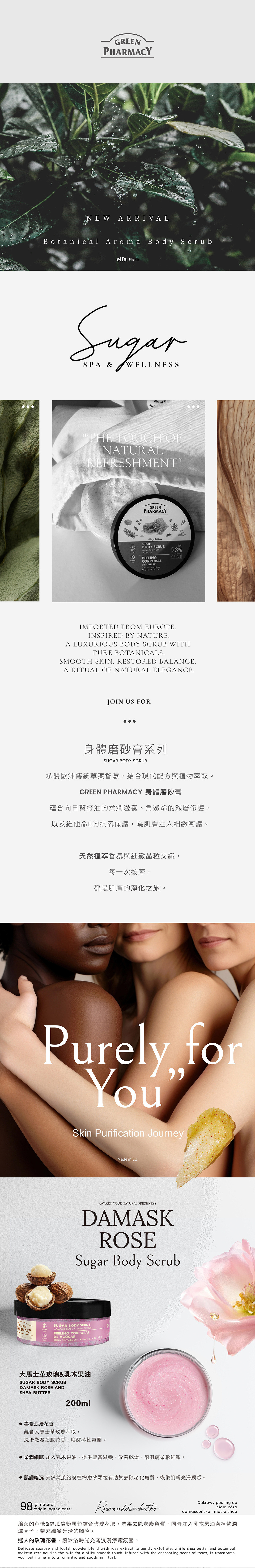 以天然蔗糖與咖啡粉顆粒溫和帶走老廢角質,搭配薑油帶來溫暖清新的膚觸感,於按摩過程中帶來清新與暖意的雙重感受,同時為肌膚注入潤澤能量。使用後肌膚更加柔滑透亮,伴隨淡雅植萃香氣,打造宛如SPA般的居家護理體驗。