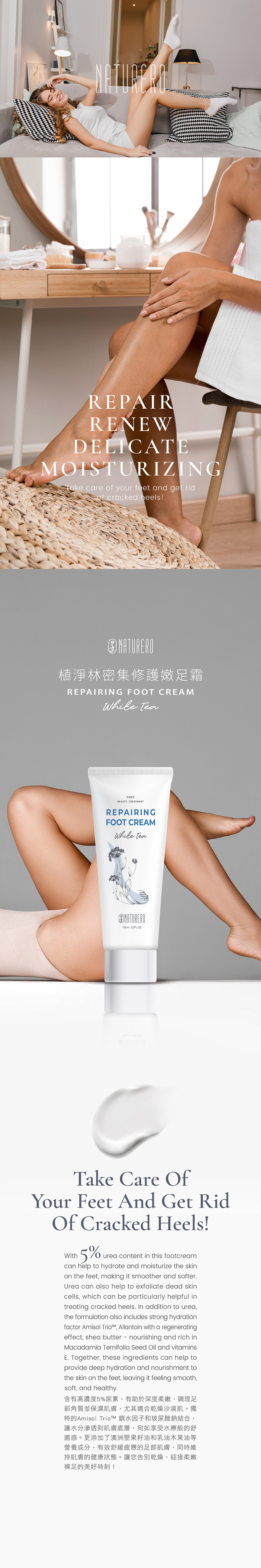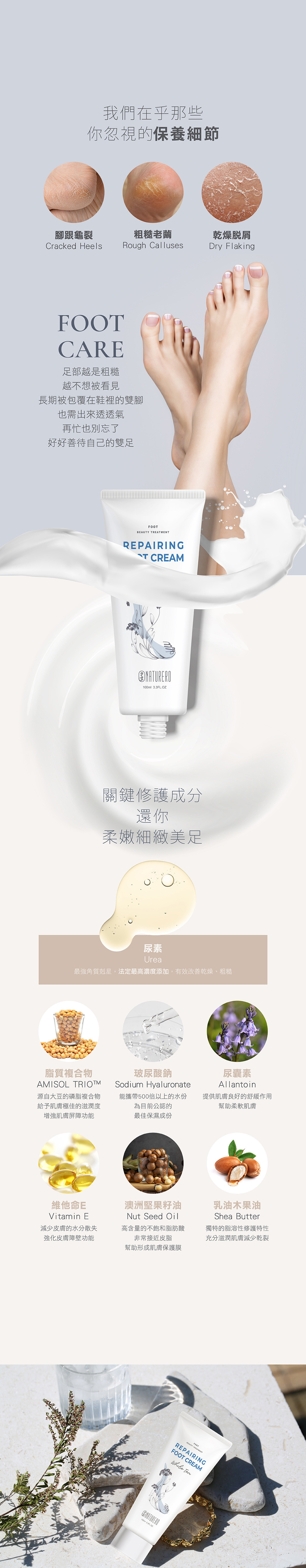 尿囊素的修護效果結合維他命E,舒緩疲憊足部肌膚,維持健康狀態