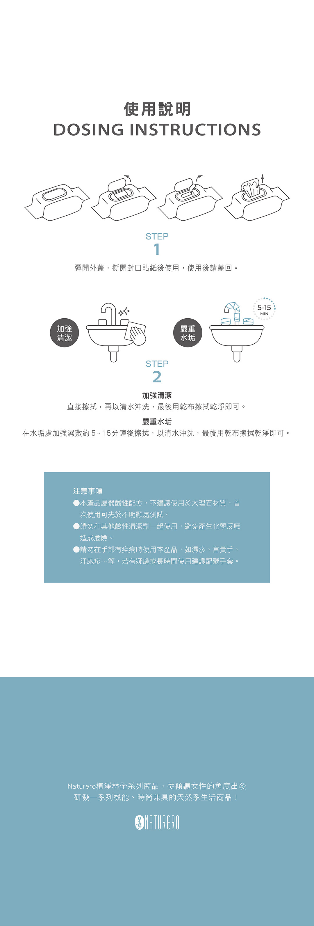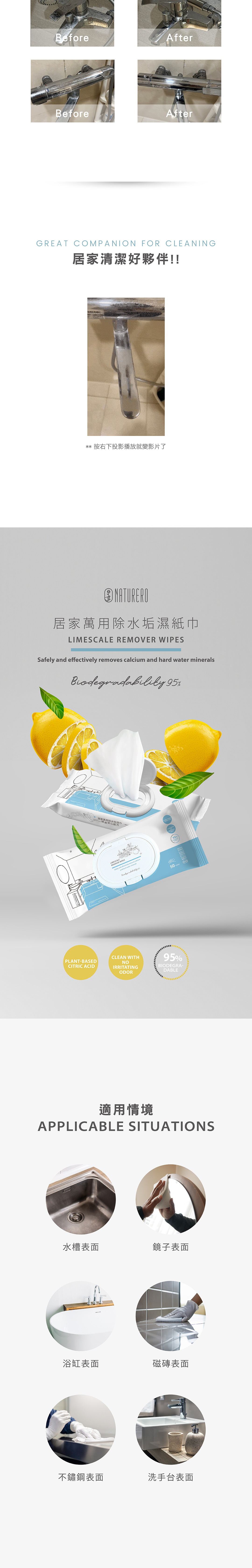 1.本產品屬弱酸性配方,不建議使用於 大理石 材質,首次使用可先於不明顯處測試。