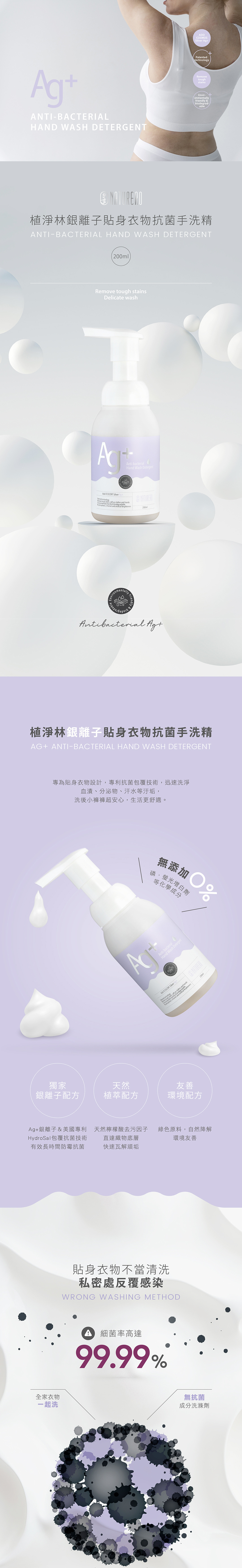 Naturero植淨林 銀離子貼身衣物手洗精200ml 3入